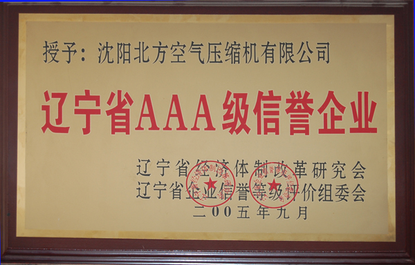 遼甯(ning)省AAA級信(xìn)譽企業(yè)