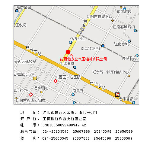 地址:沈陽市(shì)鐵西區雲峰北(bei)街41号1門 電話:024-25603545 25607888 25645098 25656589 郵(you)編:110021